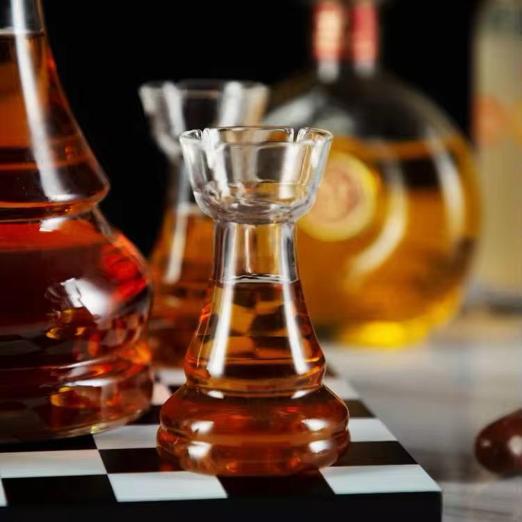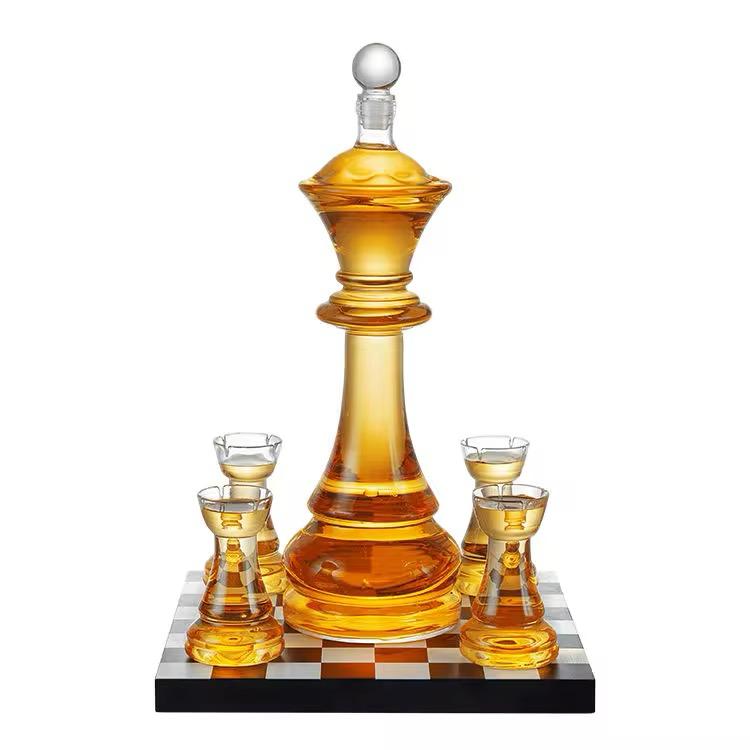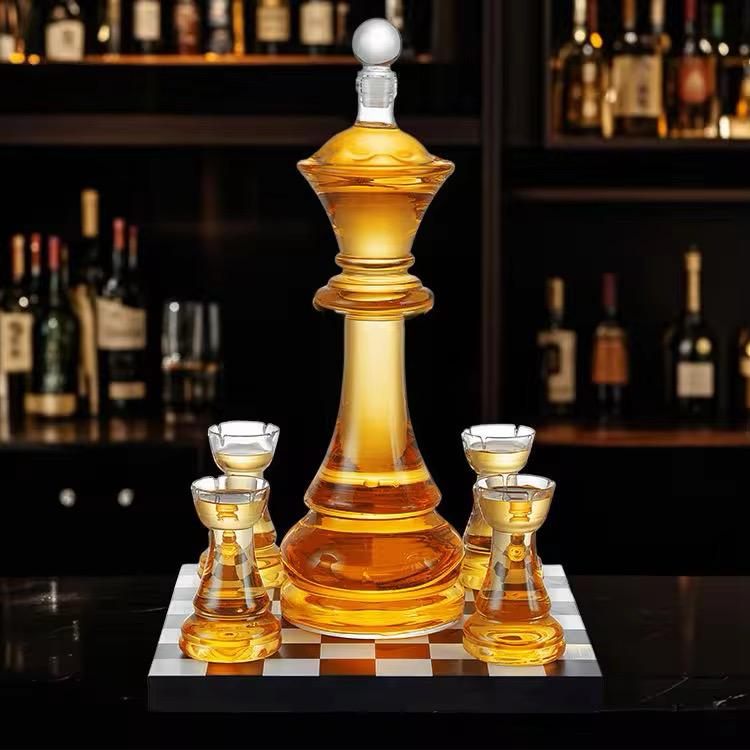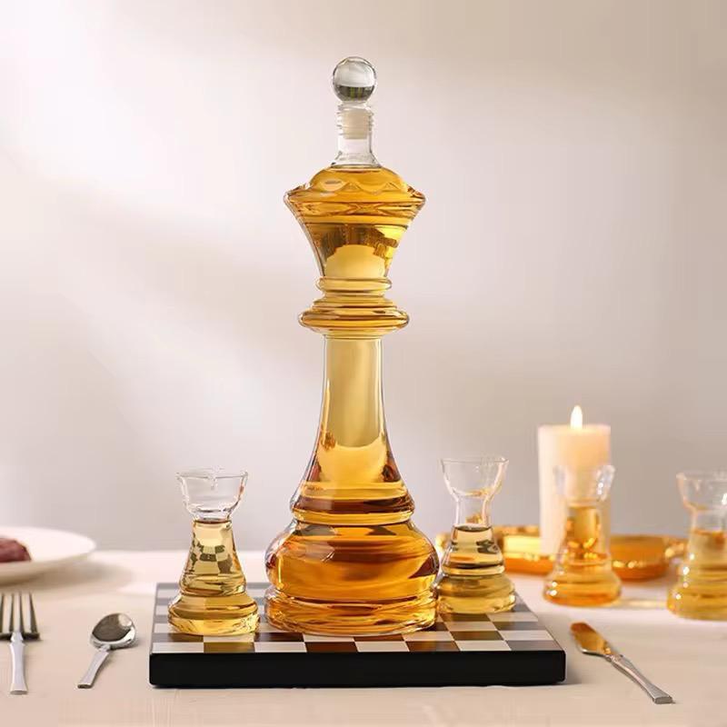 🔹 Diseño exclusivo: Botella y vasos en forma de piezas de ajedrez