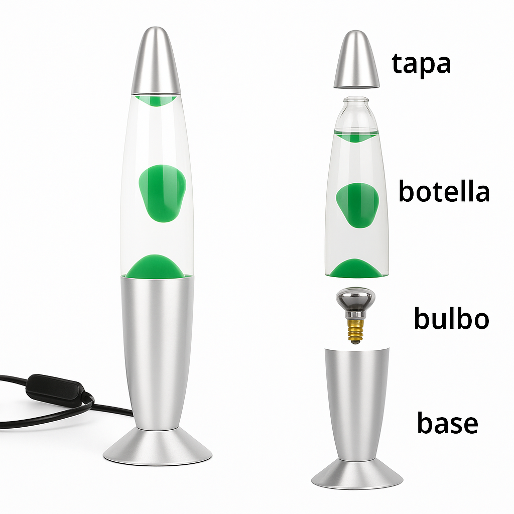 Al encenderla, la cera interna comienza a moverse suavemente formando figuras hipnotizantes, perfectas para relajarte, decorar tu living, dormitorio, oficina o sala de estar.