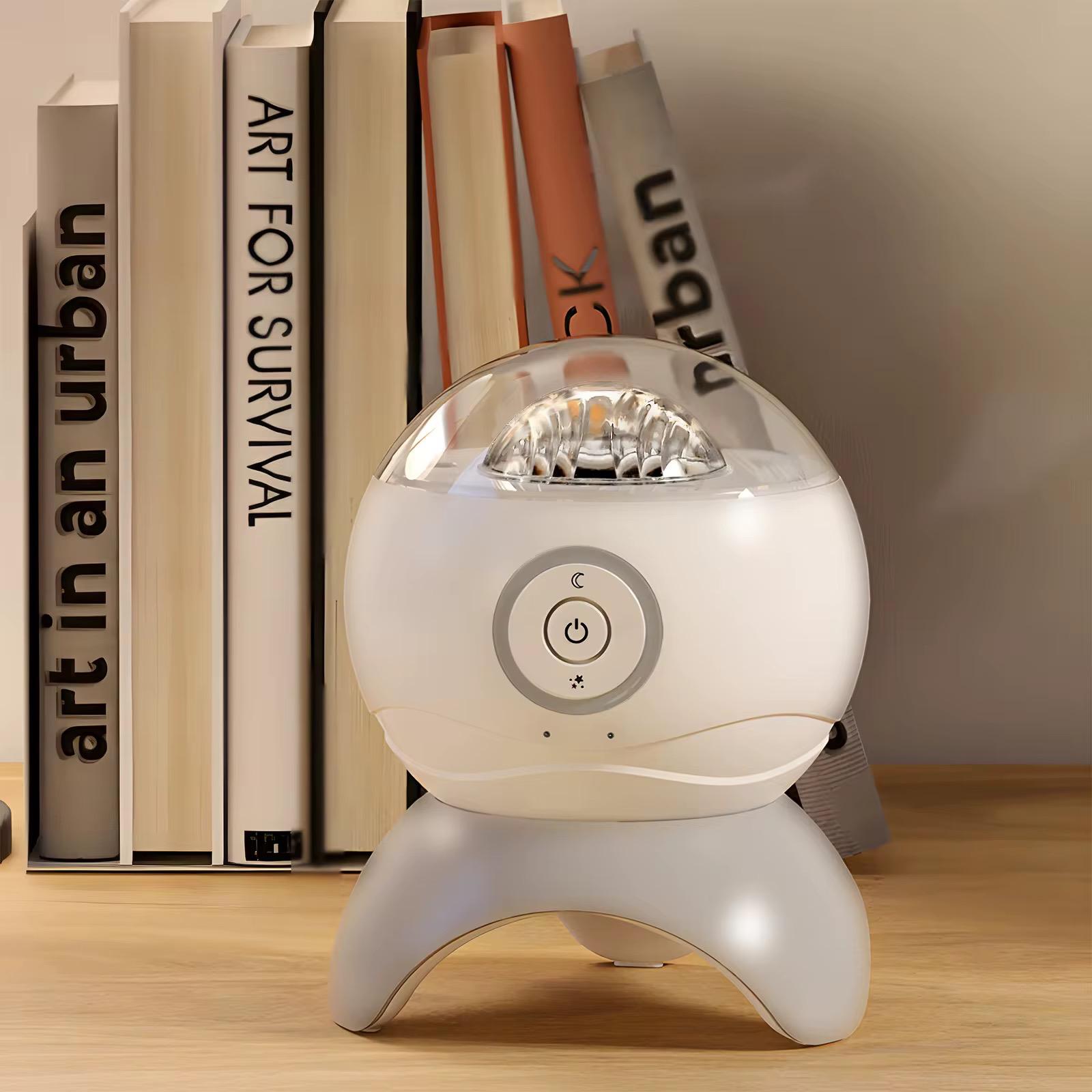 🌙 Diseño moderno y portátil: Con forma esférica elegante y base estable, es fácil de colocar en cualquier superficie. Además, su tamaño compacto permite transportarlo sin complicaciones.