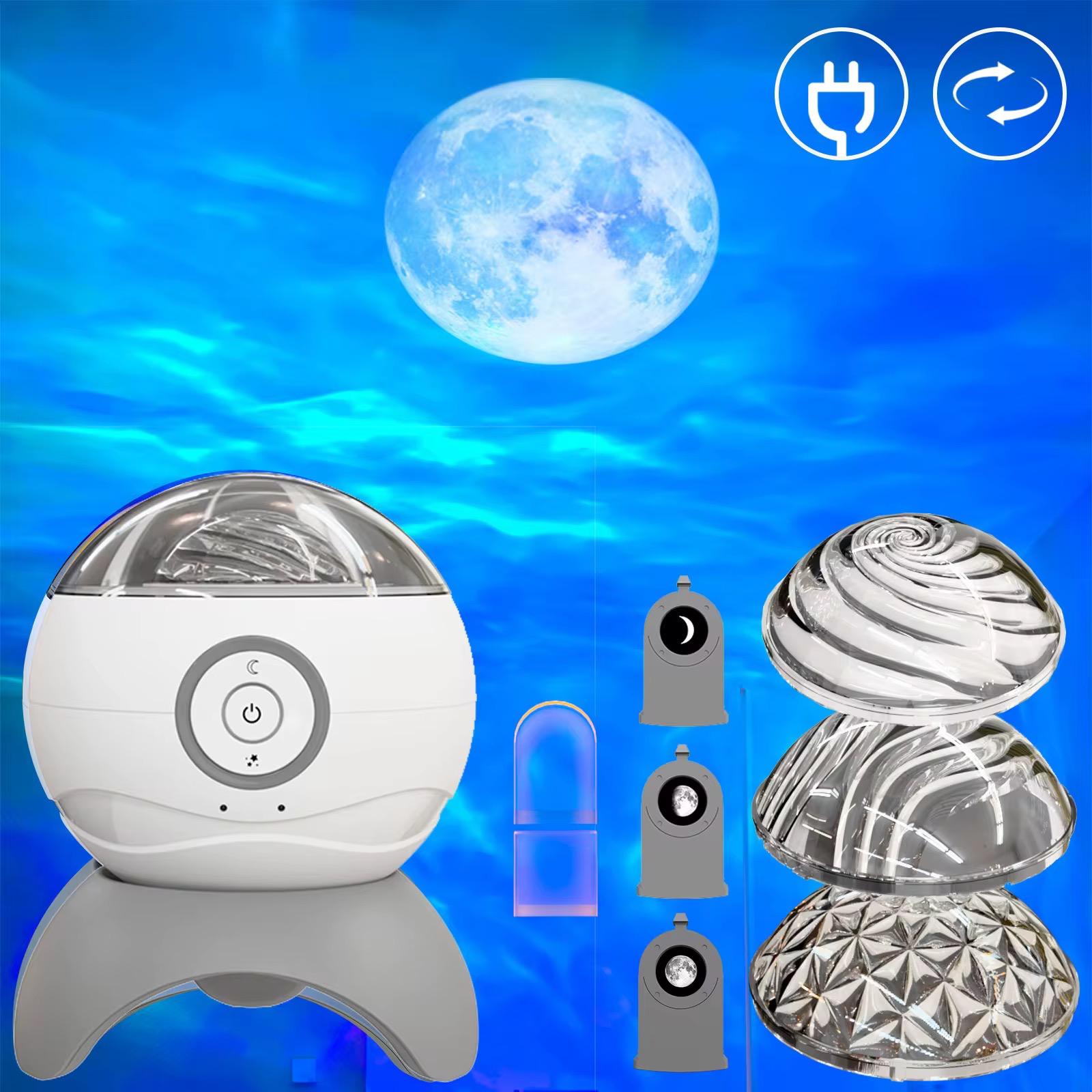 💡 Efectos de luz sorprendentes: Incluye diferentes lentes intercambiables para proyectar patrones únicos (auroras, cielos estrellados, luna, etc.). Ajusta el brillo y los colores a tu gusto para crear la atmósfera perfecta.